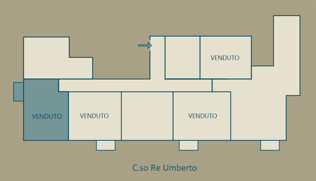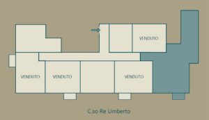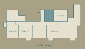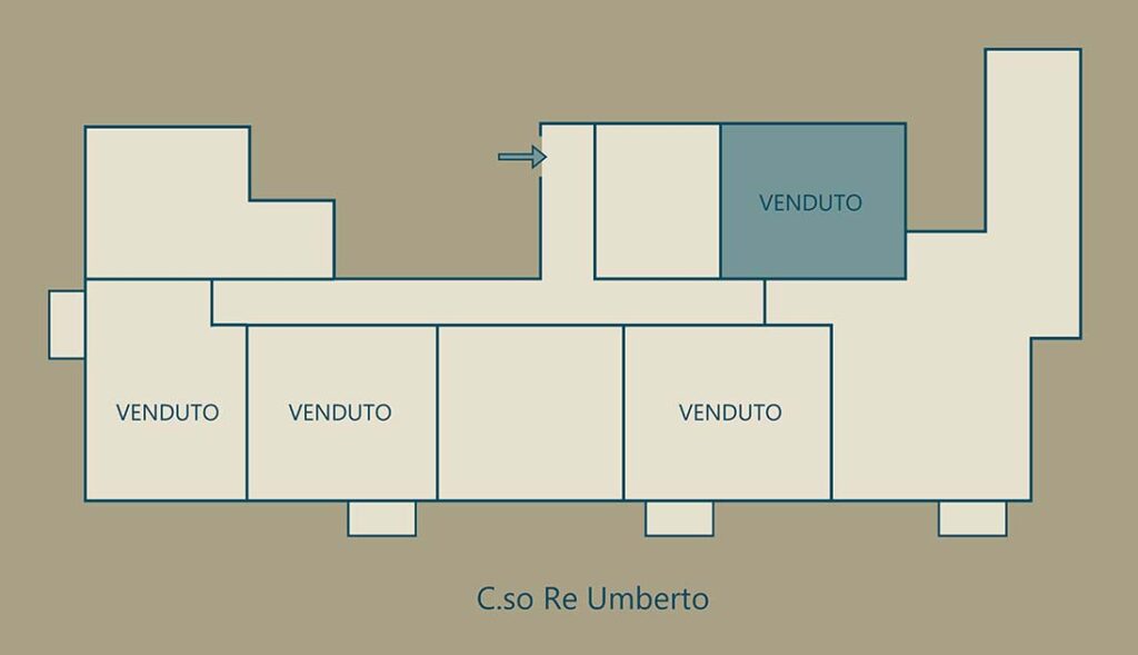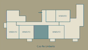 Un ampio monolocale di 55 mq al terzo piano con soppalco, balcone panoramico su Corso Re Umberto. Pavimento in listoni di rovere, serramenti in legno con triplo vetro, bagno arredato, impianto di condizionamento e domotica di ultima generazione.